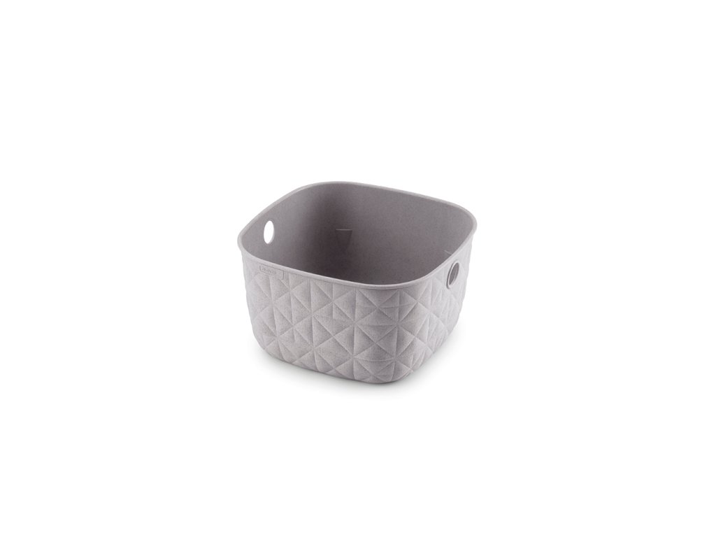 Tento stylový a praktický box se vyrábí ze 70% recyklovaného plastu. Je tedy šetrnější k životnímu prostředí. Zdobí ho jemná textura v podobě trojúhelníků a čtverců, která připomíná prošívanou tkaninu. Doplní vybavení kuchyně, obývacího pokoje, ložnice a klidně i koupelny.