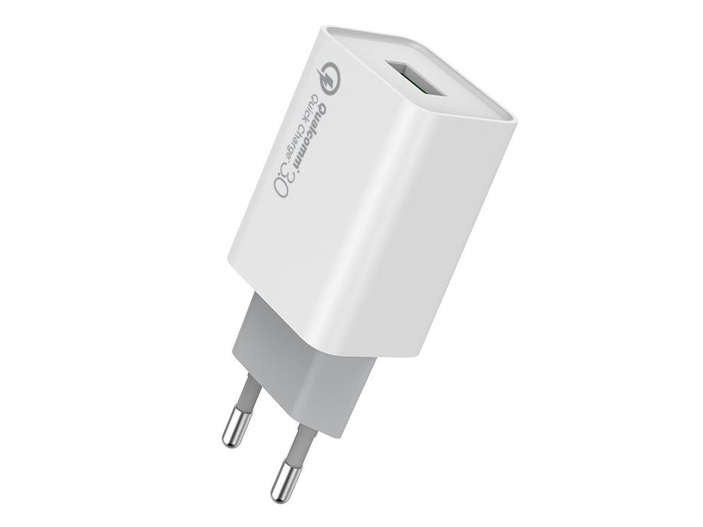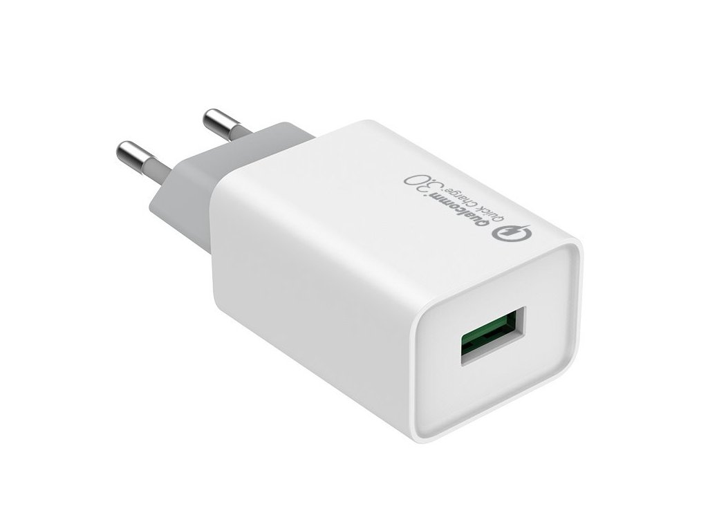 Síťový adaptér s výstupem USB, podporou Quick Charge 3.0 a výstupním výkonem 18 W.