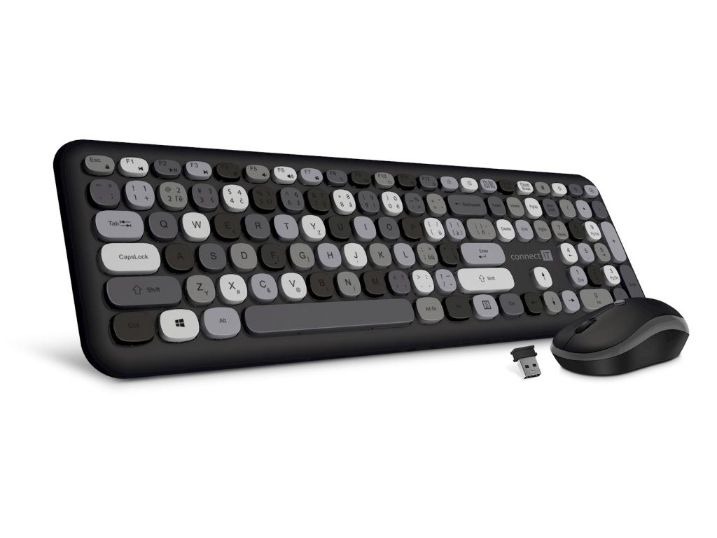 CONNECT IT FASHION combo bezdrátová černo-šedá klávesnice + myš, (+1x AAA +1x AA baterie zdarma),USB, CZ + SK