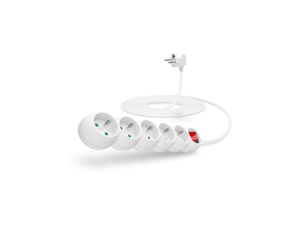 Prodlužovací kabelový přívod na 230V je vybaven hlavním síťovým vypínačem, který při vypnutí zcela odpojí od přívodu elektrické energie všechny zapojené spotřebiče najednou.