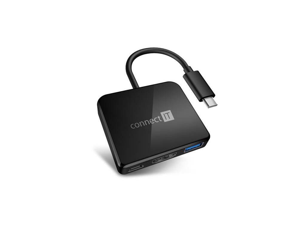 CONNECT IT USB-C hub, 3v1 (USB-C,USB-A,HDMI), externí, ČERNÝ