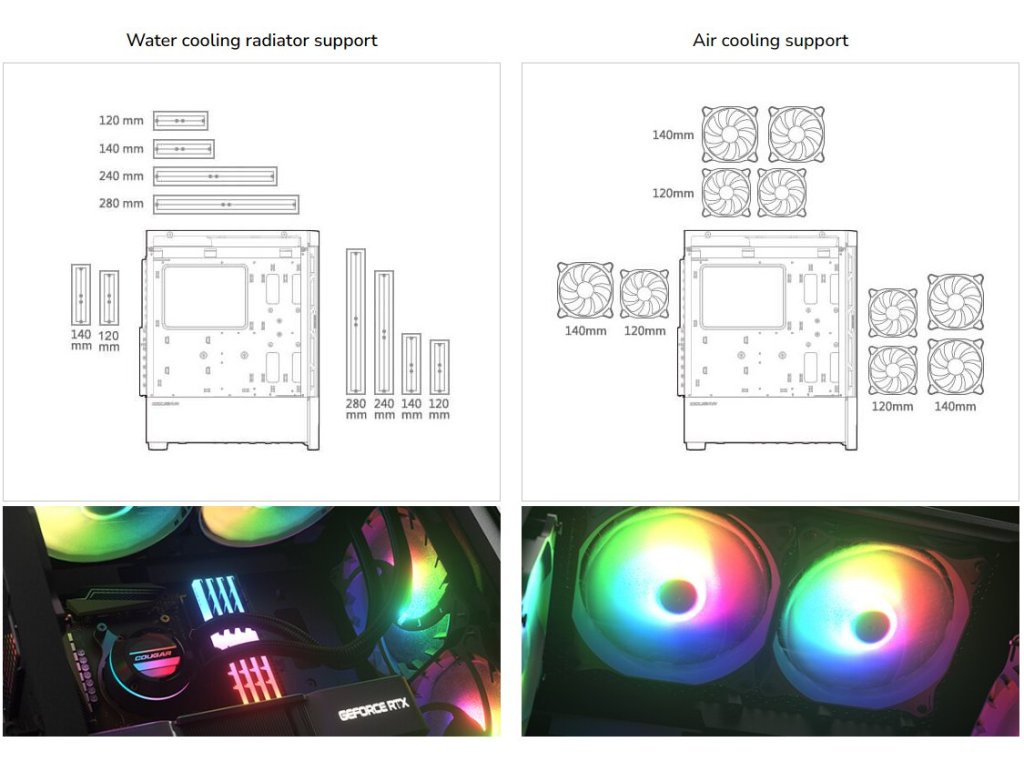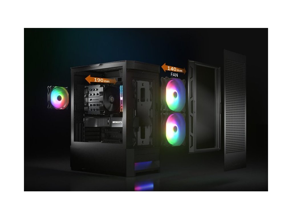 Airface RGB’s interior space supports up to five fans, a 280mm water cooling radiator, and a 190mm height CPU cooler. This immense cooling potential refrains overheating on your critical components.