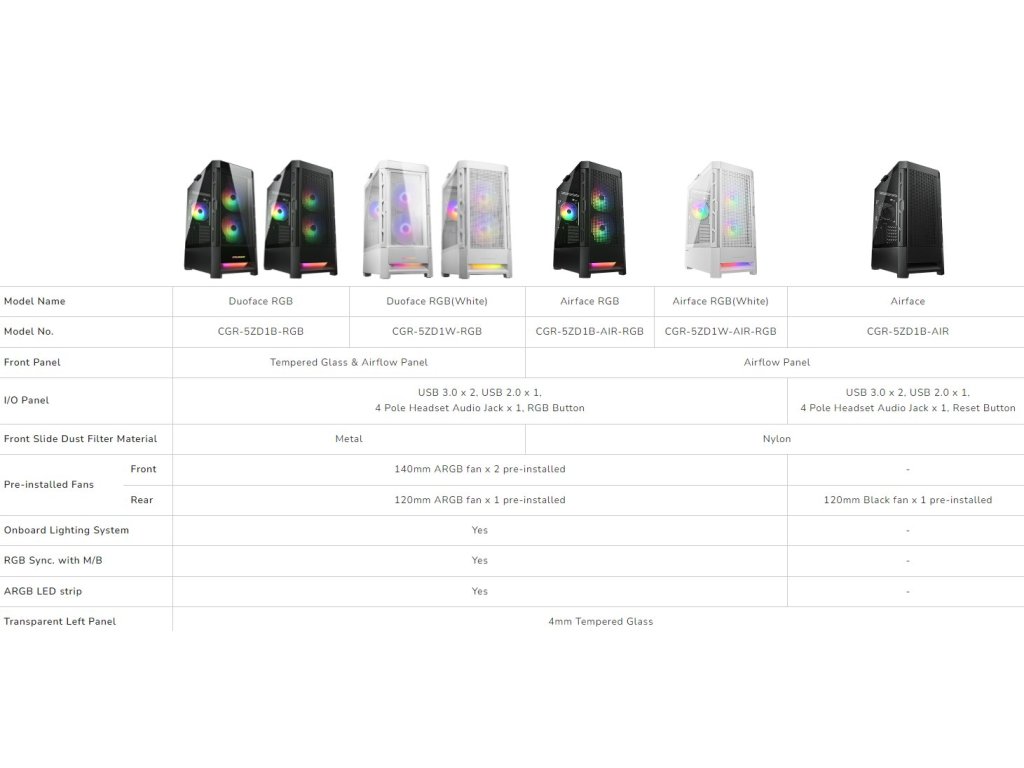COUGAR PC skříň AIRFACE RGB Black Mid Tower Mesh Front Panel 2 x 140mm ARGB Fans 1x 120mm ARGB Fan TG Left Panel
