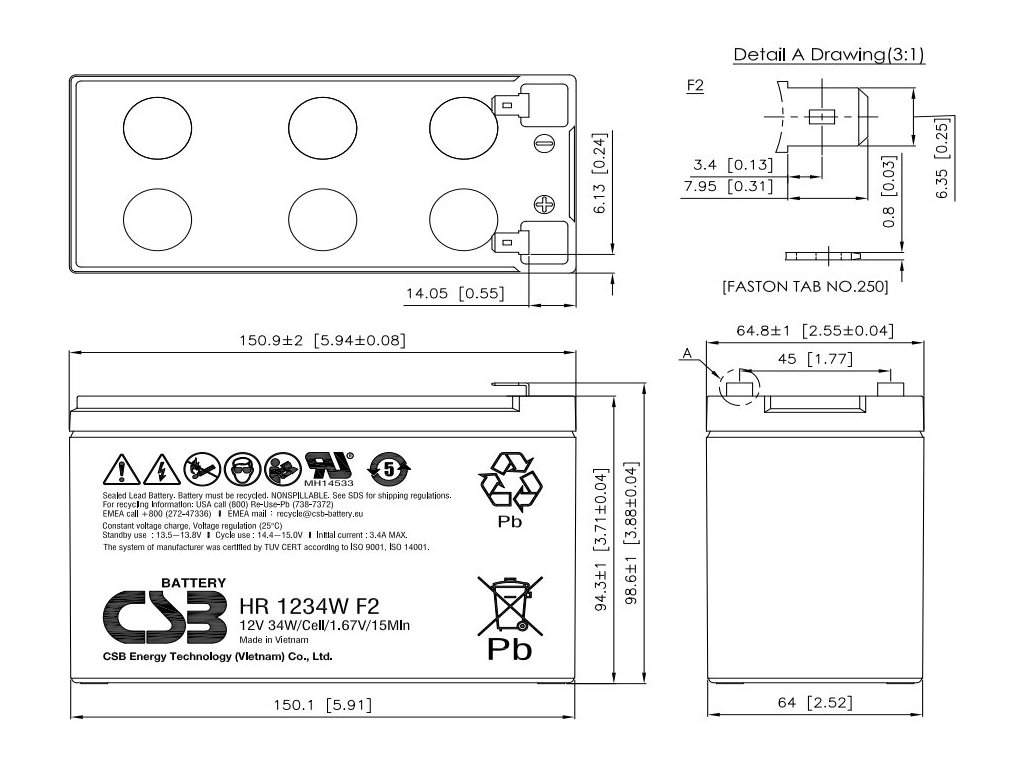 CSB Pb záložní akumulátor VRLA AGM 12V/9Ah (HR1234W F2)