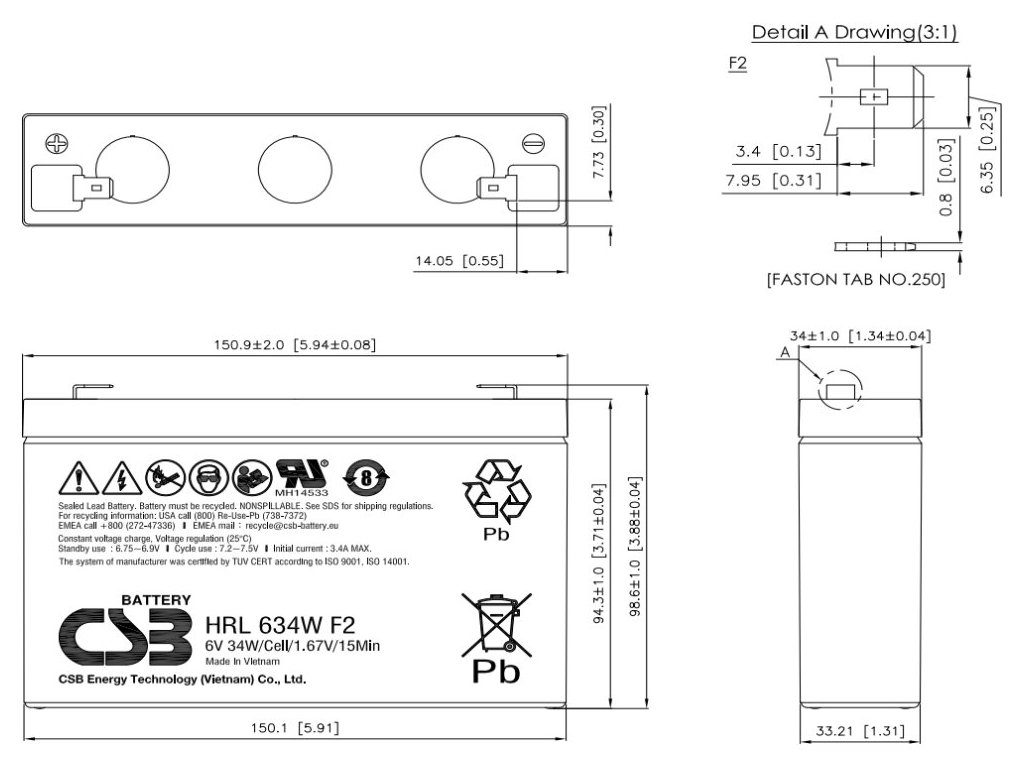 CSB Pb záložní akumulátor VRLA AGM 6V/9Ah (HRL634W F2)