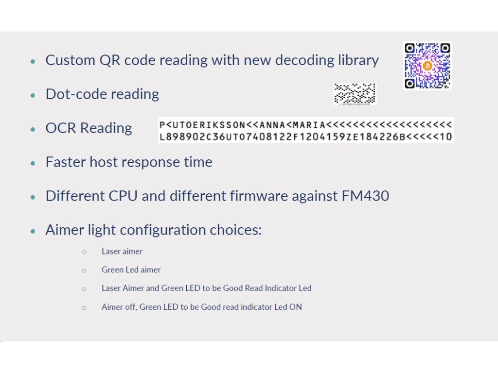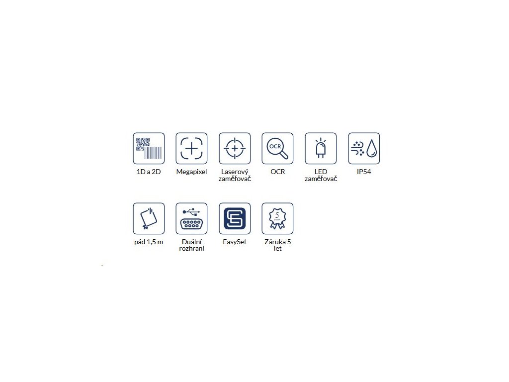 Čtečka vám poskytne výběr mezi laserovým a LED zaměřováním, takže si uživatel může vybrat podle svých vlastních potřeb. Navíc je odolná díky certifikaci IP54, která ji chrání před prachem a stříkající vodou. Adaptabilní řízení expozice vám umožní snímání čárových kódů i při silném okolním osvětlení.
