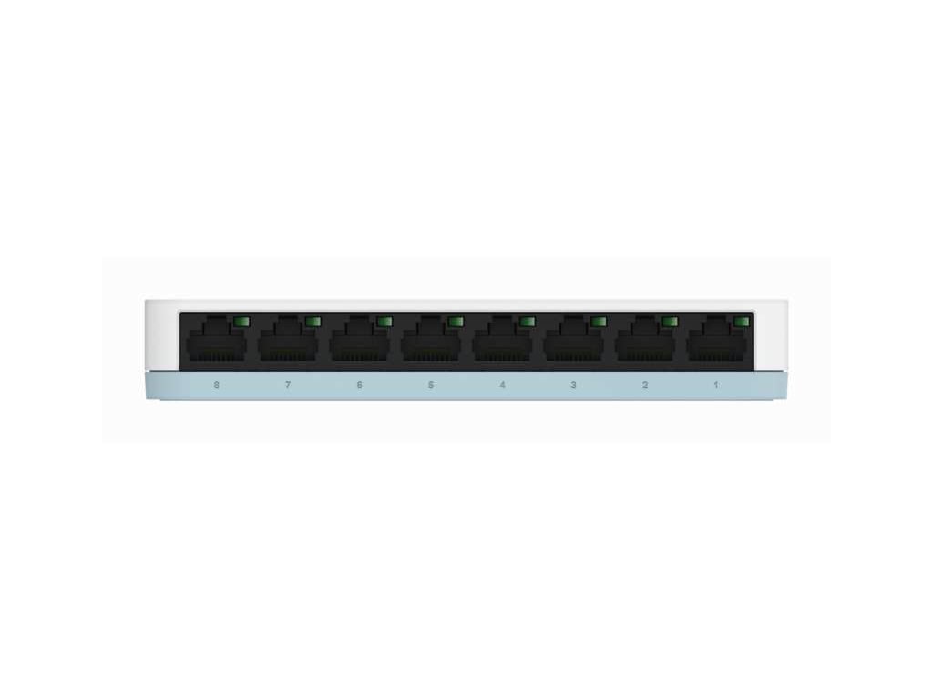 Tento stolní přístroj s 8 porty umožňuje Gigabit i v nejmenší kanceláři. Jeho 10/100/1000 Mbit NWay porty podporují nasazení v každé síťové struktuře, nezávisle na tom, zda spolu s nimi budou použita zařízení 10 Mbit nebo 1000 Mbit. Všechny portu rozeznávají automaticky rychlost přenosu (10 Mbit/100 Mbit nebo 1000 Mbit) připojených počítačů, příp. rozbočovačů. Porty automaticky rozlišují též provoz v plném nebo polovičním duplexu a podporují Flow-Control. Přenos, dosahující v režimu plného duplexu rychlosti až 2000 Mbit, zabezpečuje i zasílání časově kritických dat.