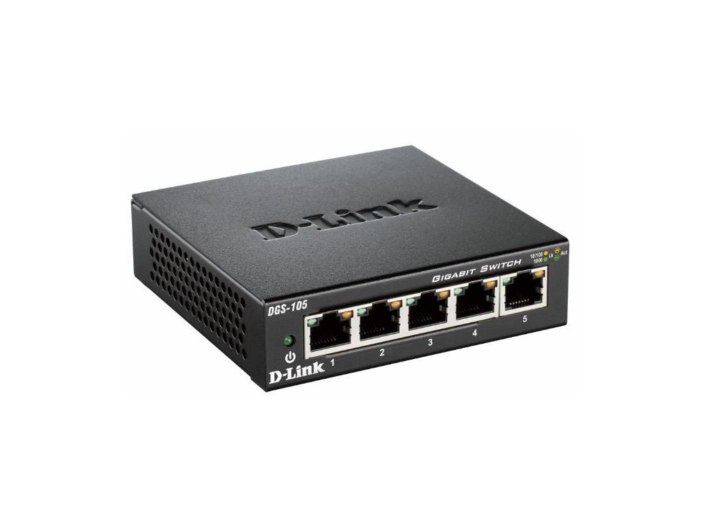 5-portový Gigabitový neřízený stolní přepínač DGS-105 nabízí ekonomický způsob, jak mohou kanceláře (SOHO) a malé a střední podniky (SMB) využít výhod větší šířky pásma gigabitového Ethernetu. Poskytuje 5 portů 10/100/1000 Mb/s pro snadné rozšíření vaší sítě a rychlý způsob, jak upgradovat síť na gigabitovou konektivitu.