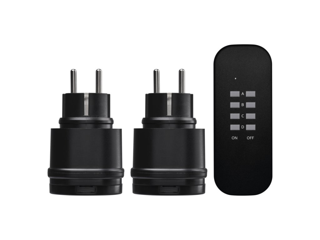 produkt dálkově ovládané zásuvky, 2 zásuvky + 1× dálkový ovladač počet zásuvek 1× 2P + PE vypínač ne napětí/proud 250 V~/13 A max. dětské clonky ano barva černá krytí IP44 materiál plast pozice ochranného kontaktu neuvádí se typ FRENCH počet pólů 2P + PE max. zátěž 3 000 W dálkový ovladač napájení 1× CR2032 3 V (součástí balení) dosah signálu až 30 m ve volném prostoru easy learning není nutné párování zásuvek a žádná instalace, zásuvka se spáruje s ovladačem automaticky po stlačení tlačítka na dálkovém ovladači. možnost ovládání až 4 zásuvky přenosoná frekvence 433,92 MHz venkovní použití ano prodejní obal 1 ks, krabička