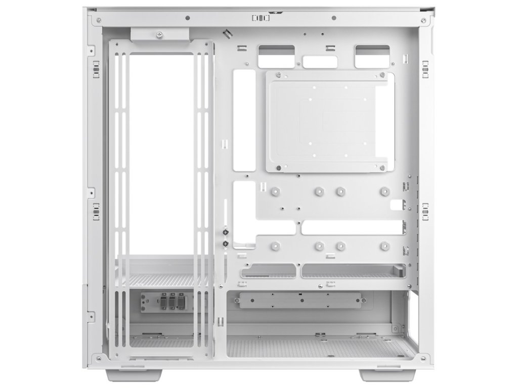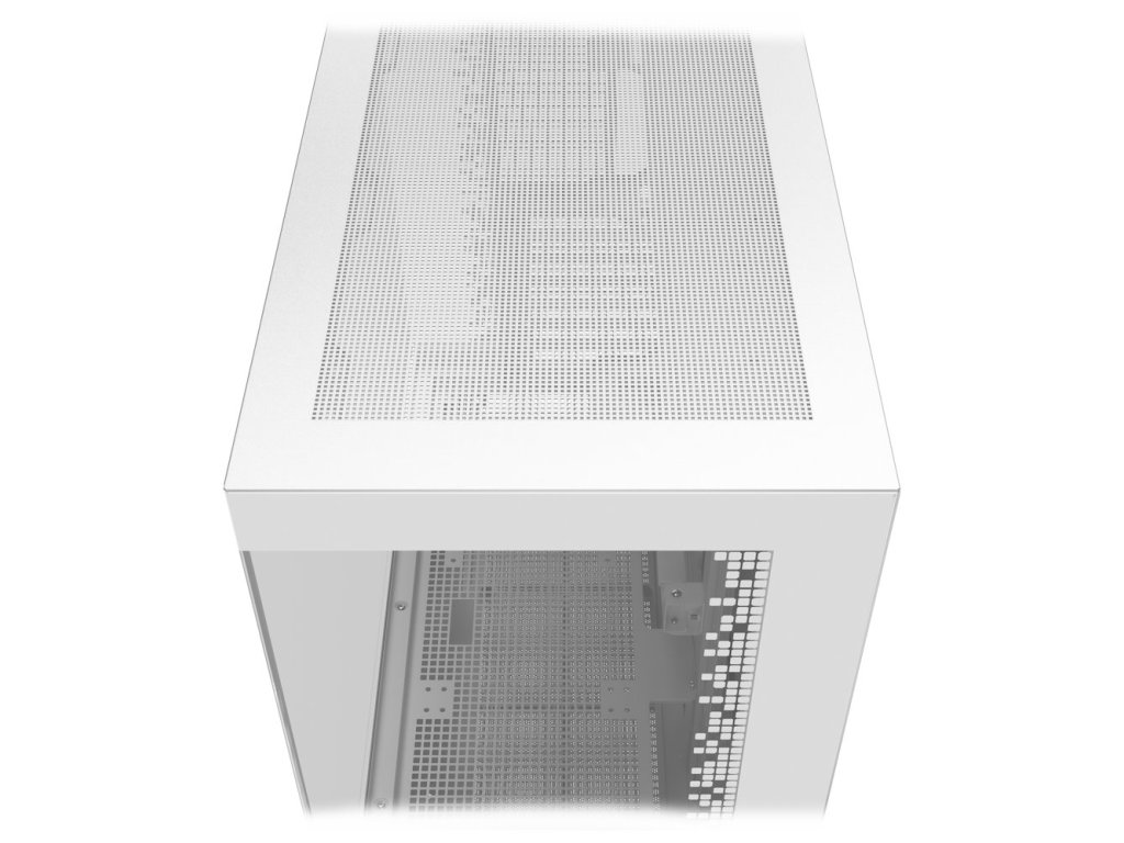 Stylová a prostorná skříň formátu Middle Tower s průhlednou bočnicí i předním panelem nabízí jednu 2,5/3,5" pozici pro HDD/SDD disk a dvě 2,5" pozice pro SSD disky. Díky možnosti osazení až deseti ventilátory skříň poskytuje více než dostatečné možnosti chlazení. Na boční straně se nachází dva USB 3.0 porty, jeden port USB-C a kombinovaný audio port pro sluchátka a mikrofon. Důmyslné řešení umožňuje pohodlné umístění až 420 mm dlouhého výměníku vodního chlazení na horní straně. Ve skříni je dostatek prostoru pro chladič CPU do výšky až 182 mm a grafickou kartu o délce až 450 mm. Základna skříně obsahuje digitální displej, který zobrazuje aktuální teplotu, výkon, spotřebu a otáčky ventilátorů. Displej se může v daném okamžiku zaměřit na tyto hodnoty u procesoru, grafické karty nebo napájecího zdroje. Mesh panely zajistí vysoký průtok vzduchu. Potěší také vestavěná podpěra pro grafickou kartu. Skříň je dodávána bez zdroje a součástí balení je sada odnímatelných prachových filtrů.