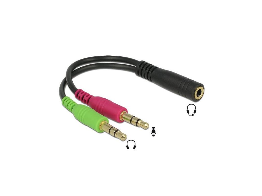 Delock adaptér stereo jack 3,5 mm 4 pin samice > 2 x stereo jack 3,5 mm 3 pin