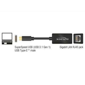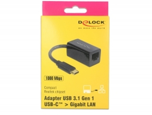 Delock Adaptér Super Speed USB (USB 3.1 Gen 1) s USB Type-C™ samec > Gigabit LAN 10/100/1000 Mbps kompaktní černý