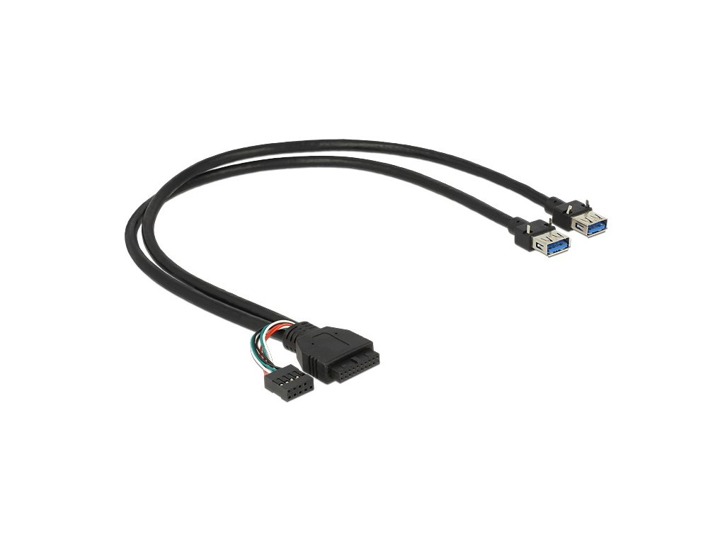 Delock kabel USB 3.0 pin konektor samice + USB 2.0 pin konektor samice > 2 x USB 3.0 A samice 45 cm