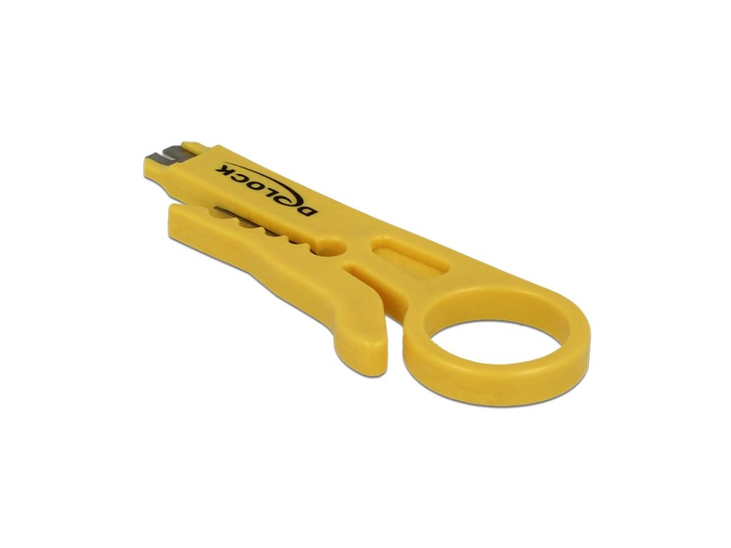 Tento kabelový nástroj od Delocku může být použit k odizolování kabelů. Kromě toho lze špičku nástroje použít ke vložení drátů do samořezného konektoru.
