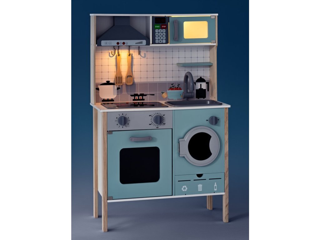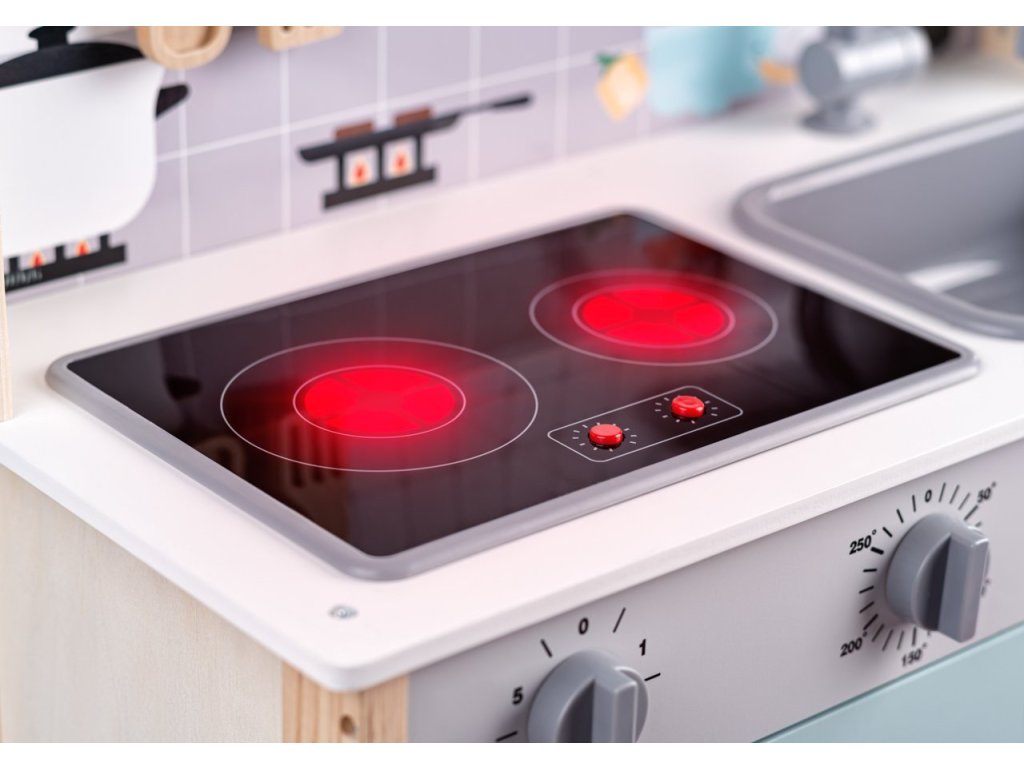 Jakmile děti zapnou sporák, plotýnka na něm se rozsvítí červeným světlem. Zároveň se ozve zvuk praskajícího oleje. Budou si hrát na smažení řízků a jiných pochoutek. Na digestoři najdou dvě tlačítka. Jedno rozsvěcuje světlo, druhé spustí zvuk ventilátoru. Světlo se nachází i v mikrovlnné troubě, aby vaši potomci viděli dovnitř.