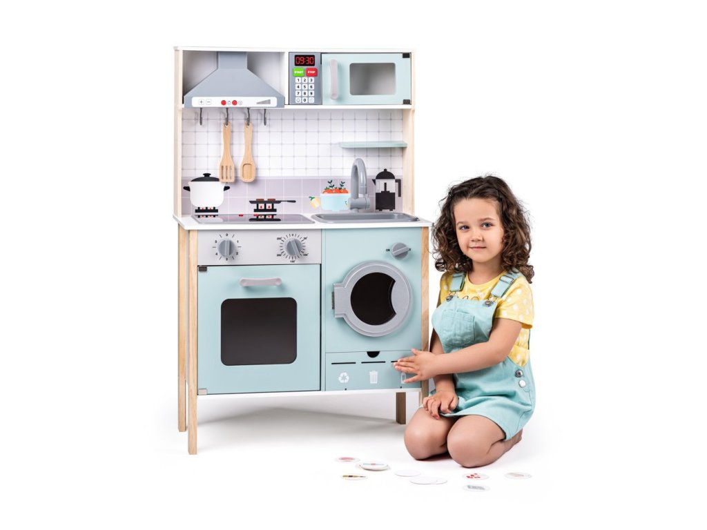 Naučte své ratolesti správně třídit odpad. Ke kuchyňce dostanou kartičky s obrázky použitých obalů, zbytků jídel, skleněných láhví a dalšího podobného odpadu. Ty pak vkládají do třech otvorů se znaky ve spodní části kuchyňky.