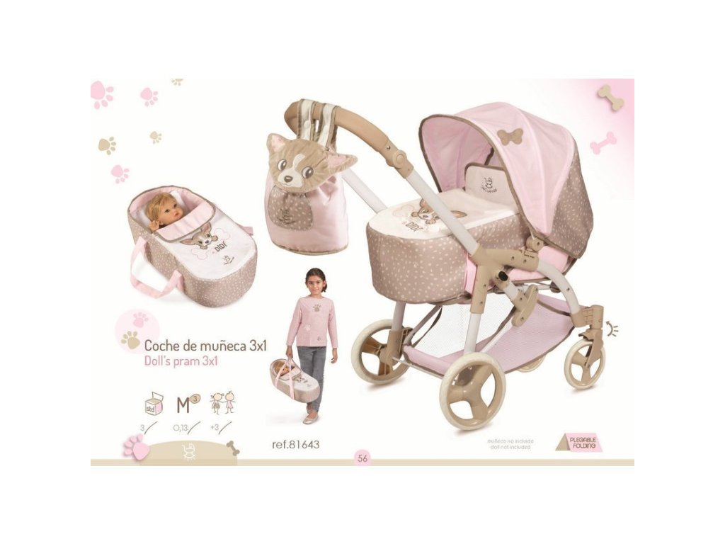 Dětský kočárek DeCuevas 81643 skládací pro panenky 3 v 1 s přenosnou taškou DIDI 2021 - 75 cm