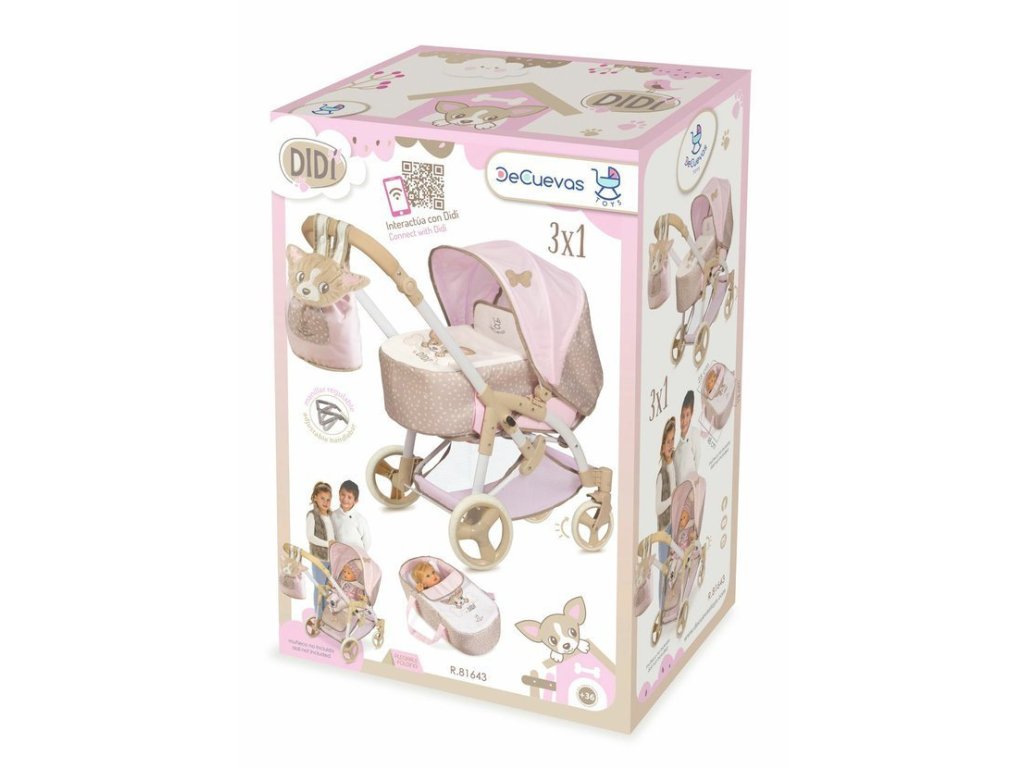 Skládací kočárek pro panenky 3v1 DeCuevas DIDI 2021 v jemném designu potěší každou malou slečnu. Díky výškově nastavitelné rukojeti a funkčním doplňkům je ideální pro předškolní děti od 3 let. Kočárek vás zaujme krásným provedením s vyšívaným motivem roztomilého štěňátka čivavy.