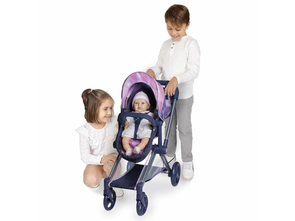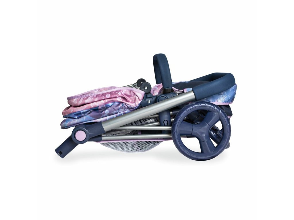 Kombinovaný model 3 v 1 využije váš potomek jako hluboký kočárek, nebo ho promění ve sportovní verzi. Manipulace s kočárkem je díky otočným kolečkům snadná a vaše dítě ji zvládne s přehledem. Korbička je odnímatelná, takže panenku přenese pohodlně i mimo kočárek. Po složení nezabere téměř žádné místo, což oceníte při cestování autem.