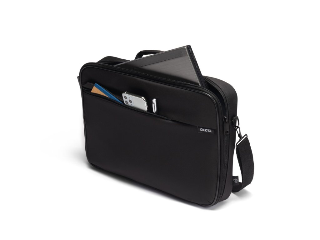 Zapínací pásek zajišťuje bezpečné držení bez sklouznutí. V přední přihrádce na zip můžete mít dokumenty a mobilní příslušenství jako smartphony, vizitky, pera atd. vždy po ruce. Pohodlné nošení nabízí délkově nastavitelný a odnímatelný ramenní popruh a rukojeť. DICOTA podtrhuje dlouhou životnost rodiny ONE prodlouženou zárukou 5 let.