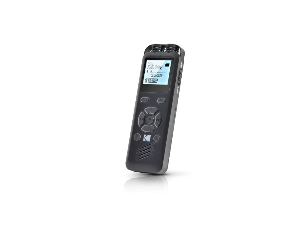 Diktafon KODAK VRC250 váží pouhých 34 g, ale nabízí vše, co potřebujete pro rychlé a spolehlivé nahrávání – ať už jde o schůzky, nápady nebo vlastní myšlenky. Funkce jako hlasová aktivace, plánování nahrávání nebo proměnná rychlost přehrávání zvyšují pohodlí a efektivitu. Pomocí micro USB jednoduše přenesete soubory do počítače, přičemž zařízení poslouží i jako MP3 přehrávač s vestavěným reproduktorem.