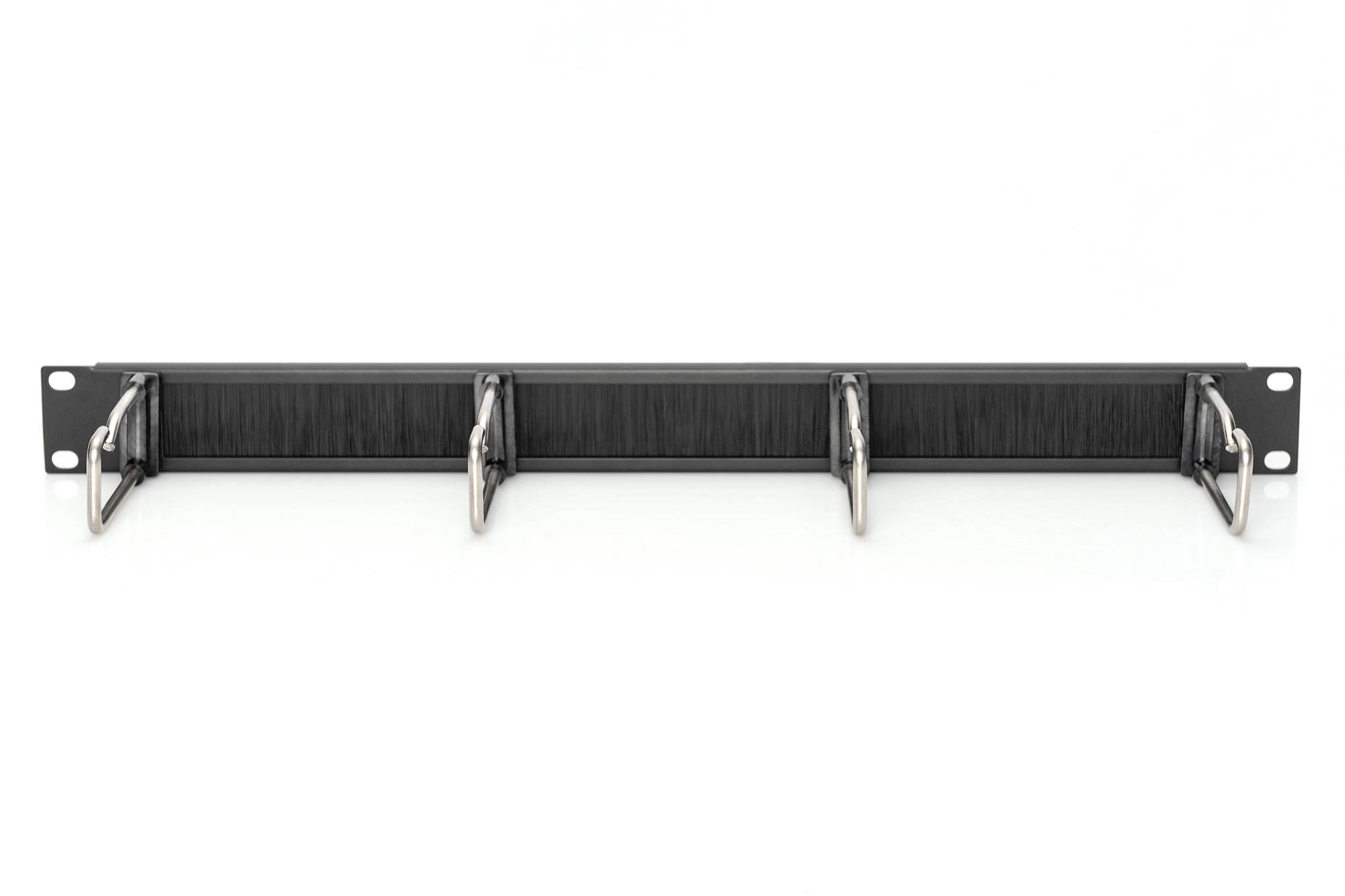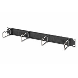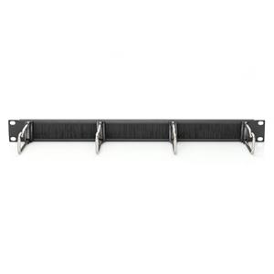 1U kabelový spravovací panel s kartáčem 4x ocelové kroužky 40x75 mm, černé (RAL 9005)