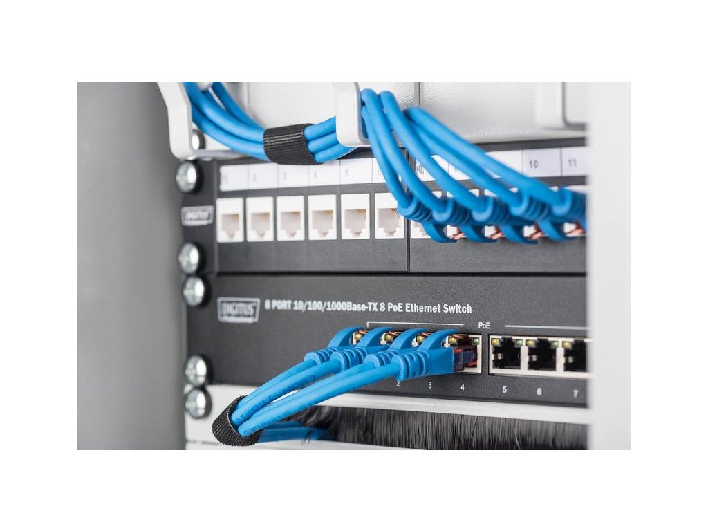 10 "panel pro správu kabelů od společnosti DIGITUS® je perfektním doplňkem pro elegantní a snadnou správu kabelů. Snadno se instaluje do vašeho 10" krytu a se třemi kabelovými kroužky poskytuje optimalizovaný kanál kabelů.