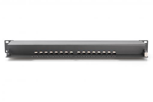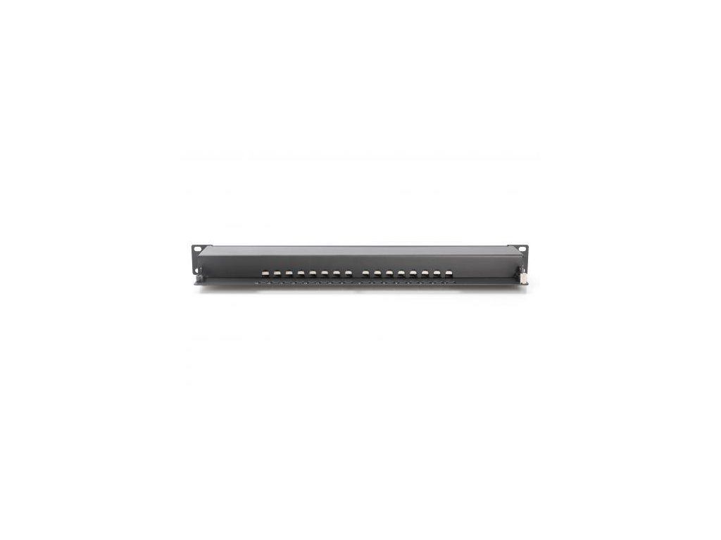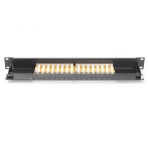 DIGITUS CAT 6, patch panel třídy E, stíněný, 16 portů RJ45, 8P8C, LSA, 1U, montáž do stojanu, černá, 482x44x109