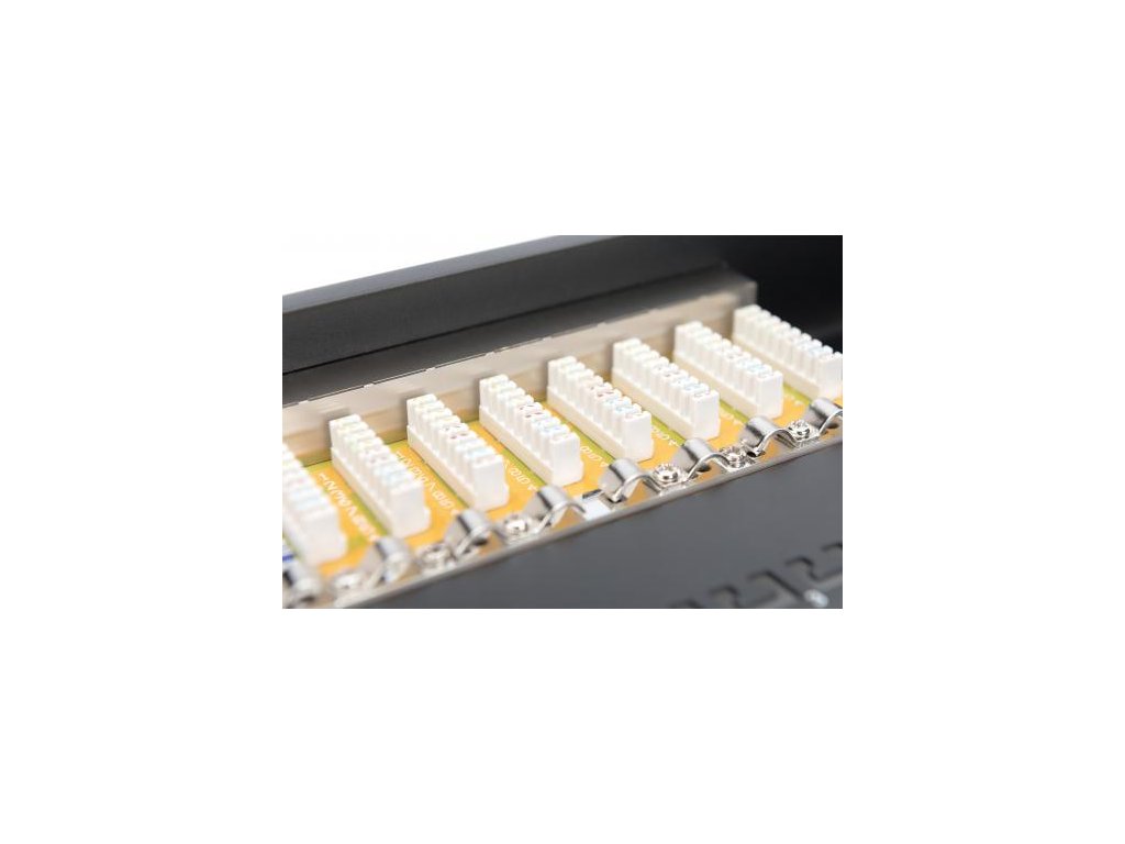 Stíněné panely CAT 6 Patch od společnosti DIGITUS® jsou k dispozici ve verzi 16 nebo 24 portů. Vyrábí se podle pro propojení třídy výkonu E, až do 250 MHz, EN 50173 a ISO / IEC 11801 a splňuje standardy PoE + 802.3at a 802.3af PoE. Pouzdro je vyrobeno z pozinkované oceli válcované za studena z 1,5 mm, a je proto dokonale vhodné pro montáž na 19 "stojan.