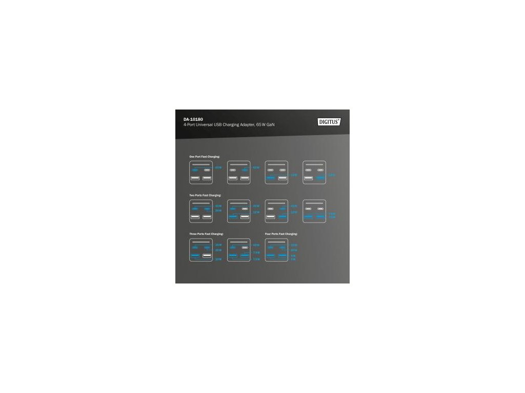 Digitus 4portový nabíjecí adaptér USB, 65W GaN 65W, 2x USB-C, 2x USB-A, PD3.0