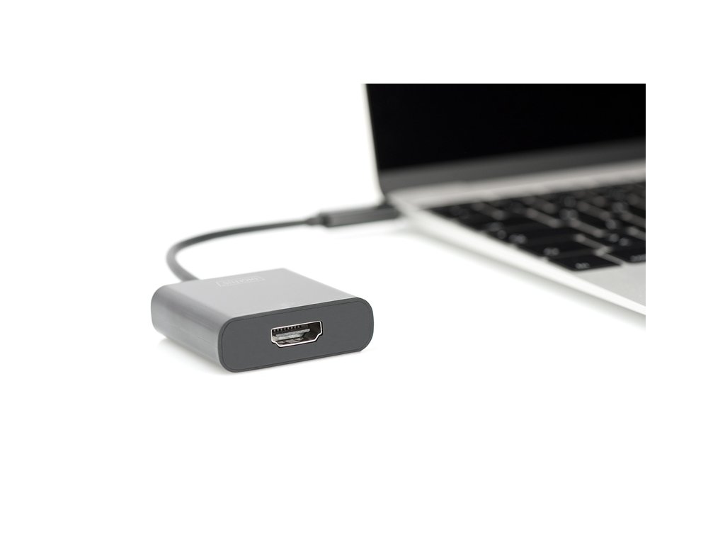 Grafický adaptér HDMI 4K HDMI USB Type-C ™ umožňuje připojit televizor, monitor nebo projektor k zařízení USB-C ™. Nejvyšší možné rozlišení je UHD (4K / 30 Hz). Je vhodný pro všechny operační systémy: Windows, Mac, Google Chrome. Adaptér je nezbytným doplňkem, ať už jej používáte soukromě při připojování notebooku k televizoru nebo profesionálně pro prezentace s projektorem HDMI.