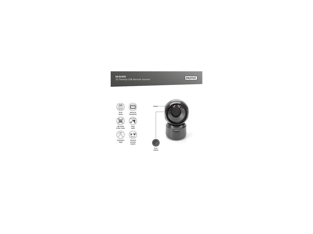 DIGITUS DA-81005 Skener čárových kódů, 2D, stolní, USB, 200 skenů/s