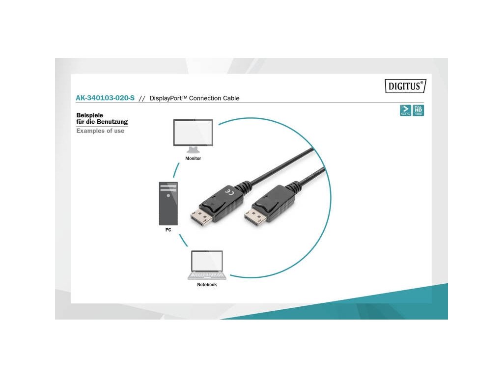 Tento vysoce výkonný digitální audio a video kabel HD se používá například k připojení počítače nebo notebooku s rozhraním DisplayPort k monitoru s rozhraním DisplayPort.