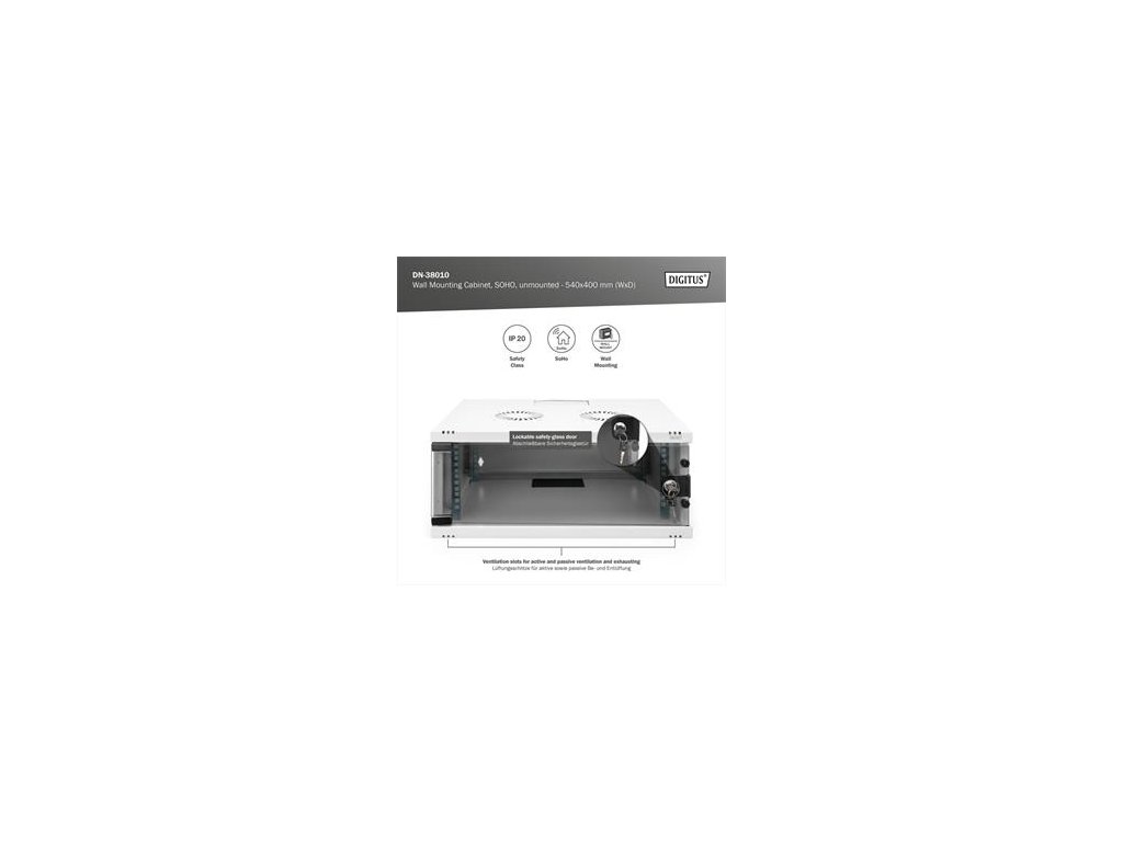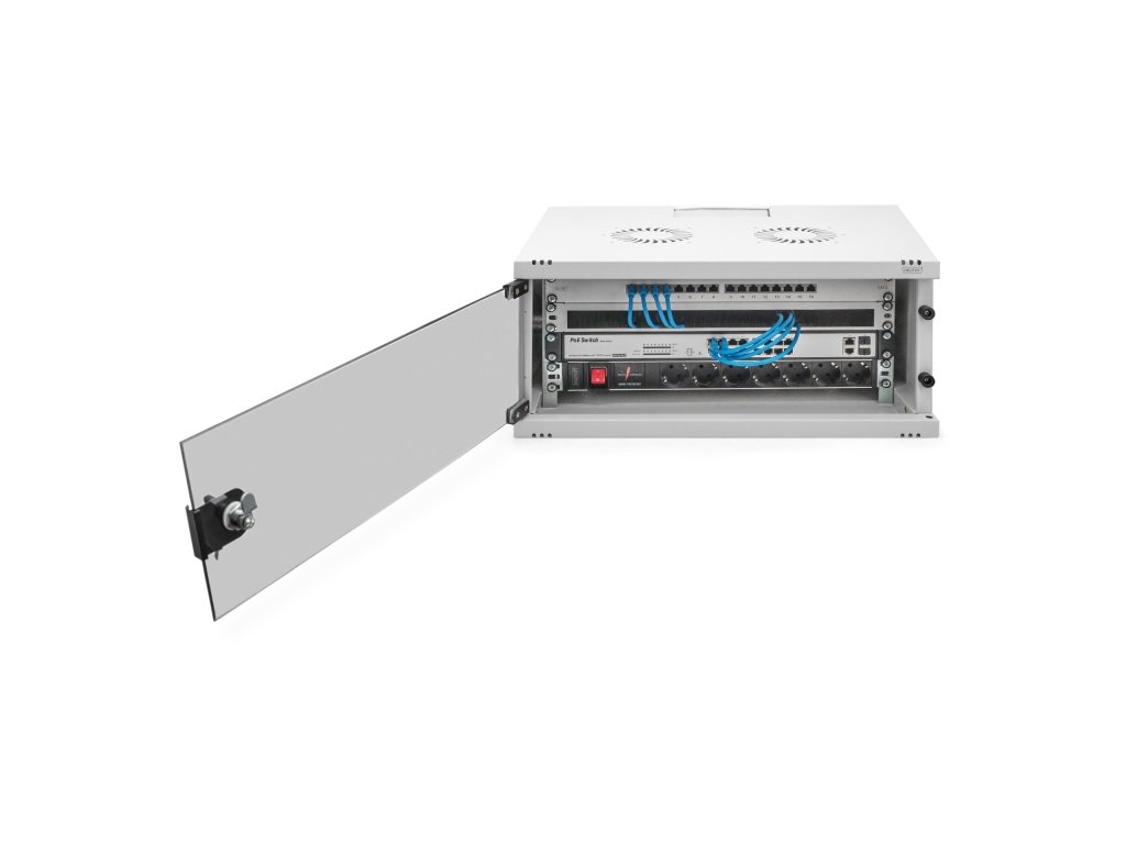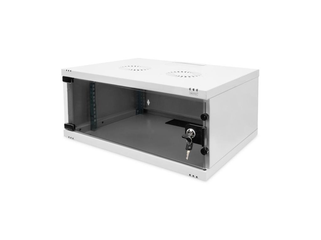 DIGITUS DN-38010 Nástěnná skříň 4U, SOHO, nemontovaná 241x540x400 mm, celoskleněné přední dveře, šedá (RAL 7035)