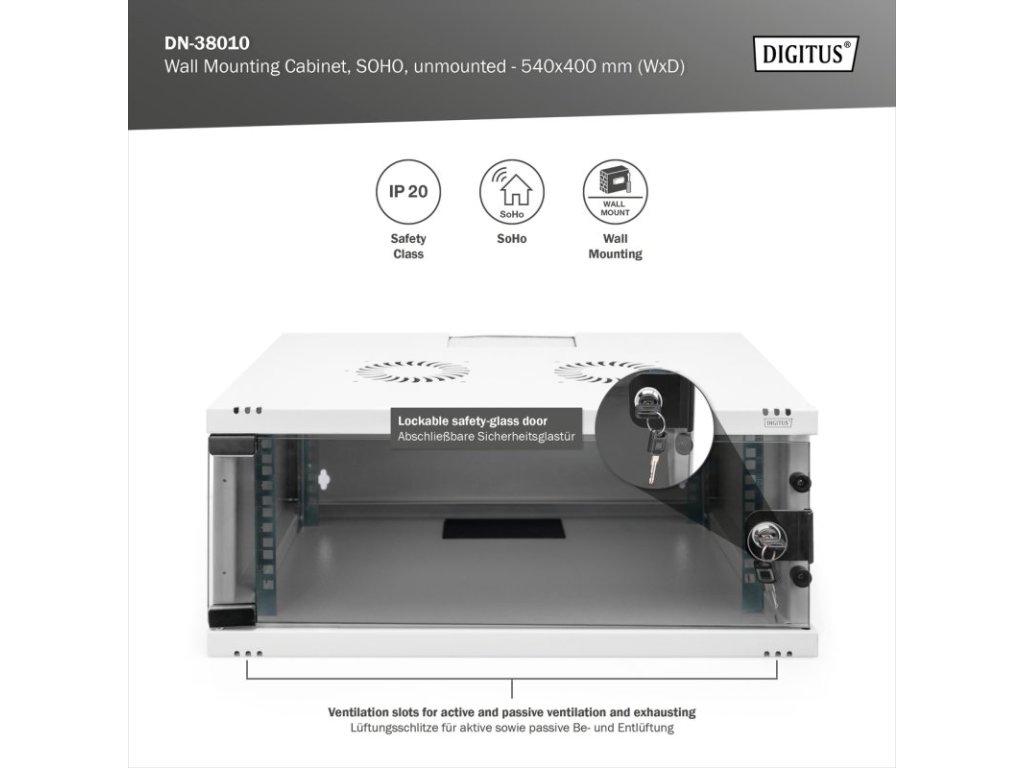 Nástěnné skříně DIGITUS® jsou vyrobeny pro vysoce náročná řešení IT infrastruktury – navrženy a vyvinuty podle nejvyšších standardů v Německu.