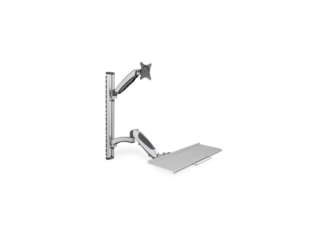 Univerzální nástěnný držák s flexibilním nastavením pracovní výšky pro montáž monitorů a klávesnic. Nastavte pracovní prostor, který mohou používat lidé různých výšek - pracovní výšku můžete snadno nastavit pomocí dvou rychlých pohybů. Jednoduše si všimněte velikosti VESA a hmotnosti monitoru, abyste mohli vybrat vhodný držák.