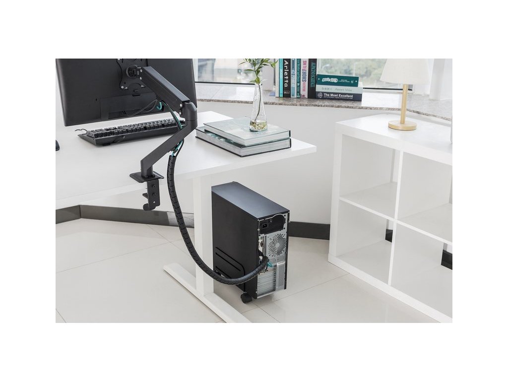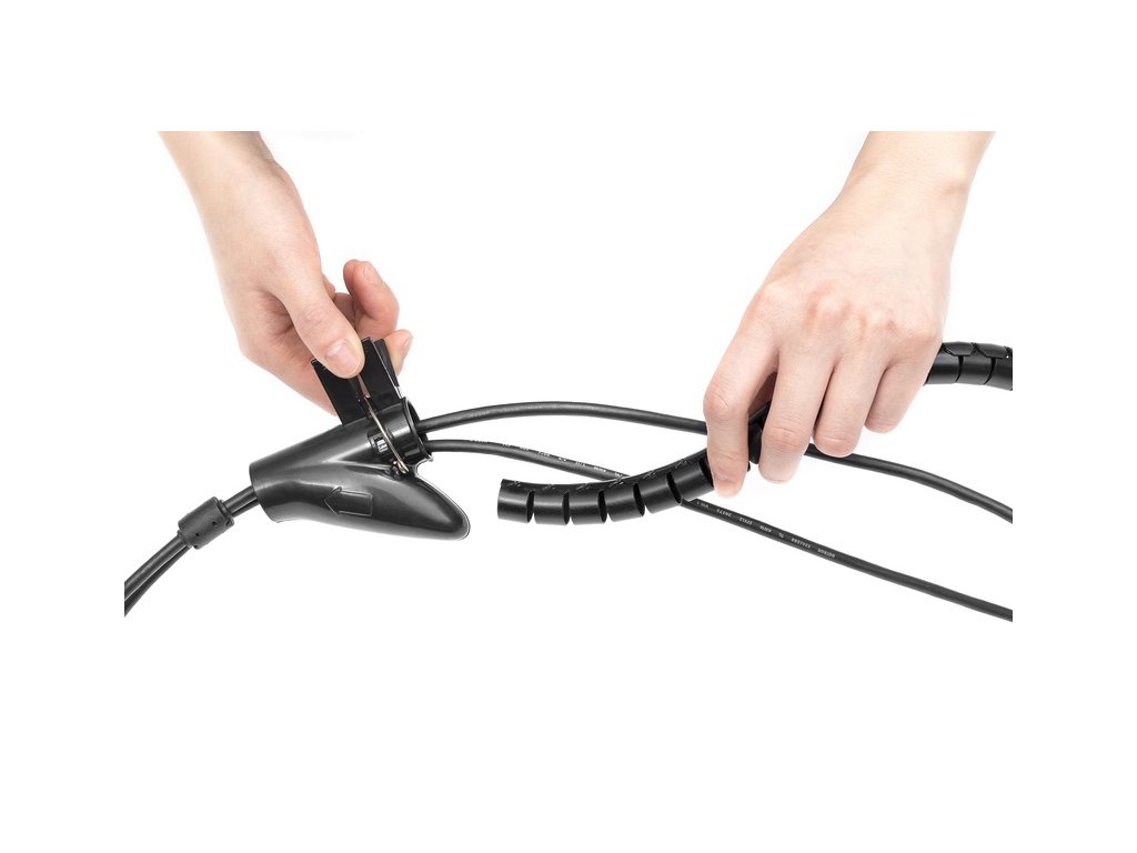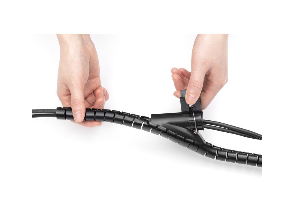 Flexibilní správa kabelů zajišťuje, že vaše připojovací kabely jsou úhledně svázány, a chrání je před opotřebením. Délku lze individuálně zkrátit a při použití více kabelů se napíná. Pomocí pohodlné tažné pomůcky můžete své kabely do spirálové trubice vtažit bez prodlení. Čistá správa kabelů a super jednoduchá manipulace jsou důvodem, proč je to zvláštní. Díky elegantnímu řešení od společnosti DIGITUS® již nepatří k nepořádkům nebo spleti kabelů.