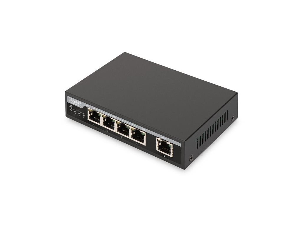 Digitus Gigabit Ethernet PoE Switch 4-portový PoE + 1-portový uplink, 62W PoE budget
