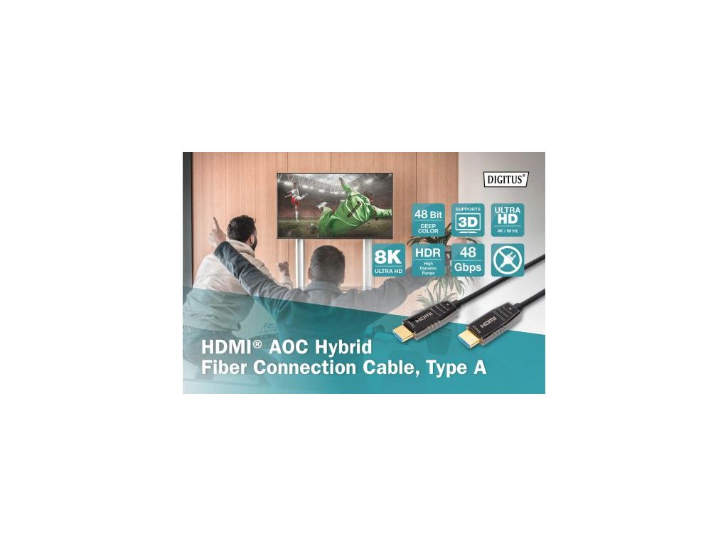 Digitus HDMI 2.1 AOC hybridní optický kabel, Type A M/M, 15m, UHD 8K@60Hz, CE, gold, bl