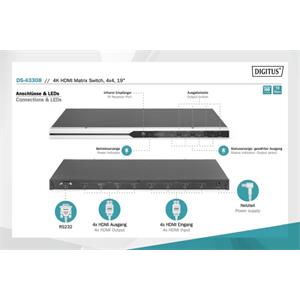 DIGITUS Maticový přepínač 4x4 HDMI 2.0, 19 palců 4K/60Hz, stříbrný/černý DS-43308