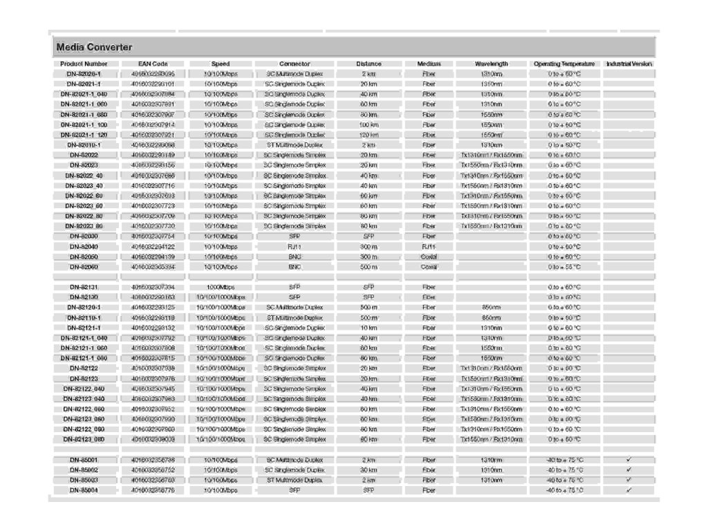 Konvertor médií od společnosti DIGITUS jsou ideálním řešením pro migraci měděných a vláknových signálů. Od této chvíle budete mít přístup k technologii Fiber Technology a přenášet síťové signály na několik kilometrů, aniž byste museli obnovovat celou svou síťovou infrastrukturu. Obrovská nabídka produktů splňuje vaše individuální potřeby. Intimní operace zaručuje rychlou a snadnou instalaci. Funkce Link Fault Pass Through nabízí propojení bez strachu. Váš správce sítě bude schopen snadno najít a vyřešit problémy se sítí. Díky dlouholetým zkušenostem a široké škále produktů se DIGITUS stává spolehlivým partnerem pro vaši síť.