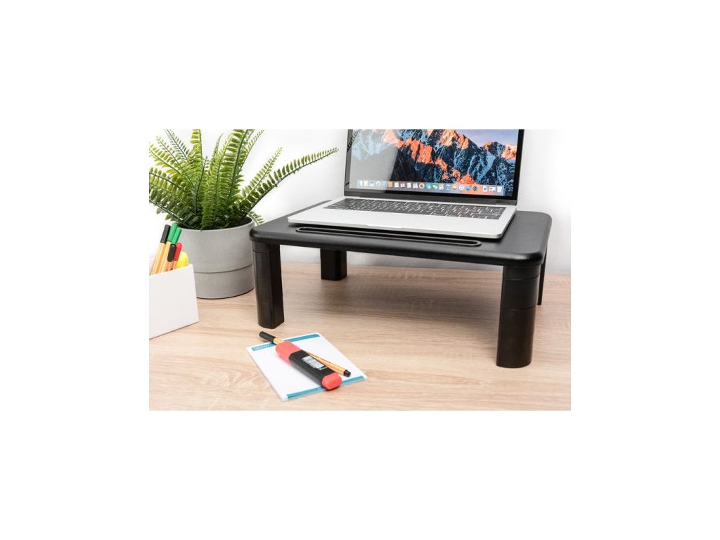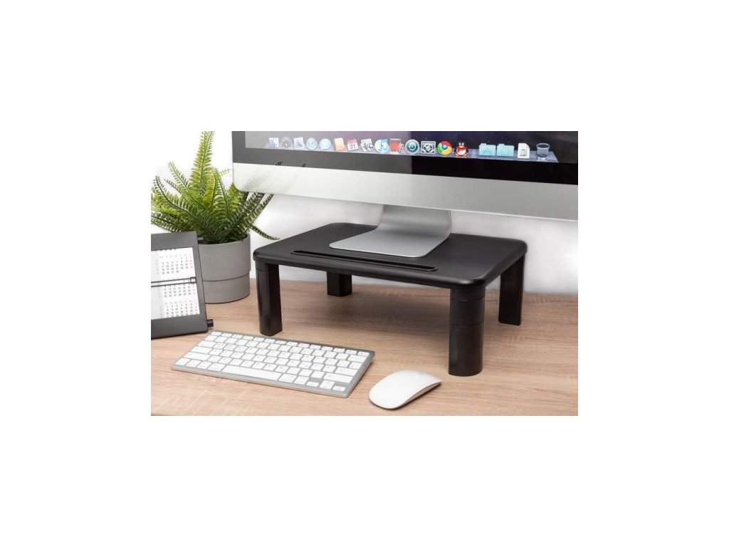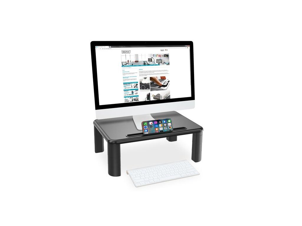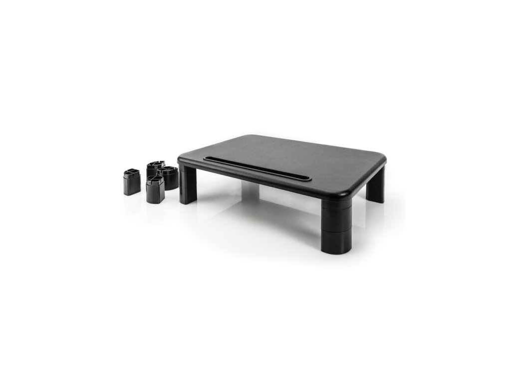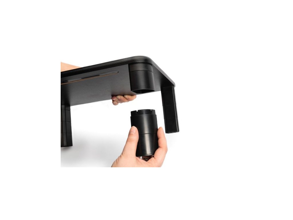 S ergonomickým podstavcem monitoru máte snadno použitelný produkt, pomocí kterého můžete svůj stůl individuálně uspořádat. Modulární konstrukce umožňuje snadno změnit výšku držáku přidáním nebo odebráním podpůrných prvků. Kromě toho je v přední části držák smartphonu a tabletu s otvory pro nabíjení nebo připojení kabelů.