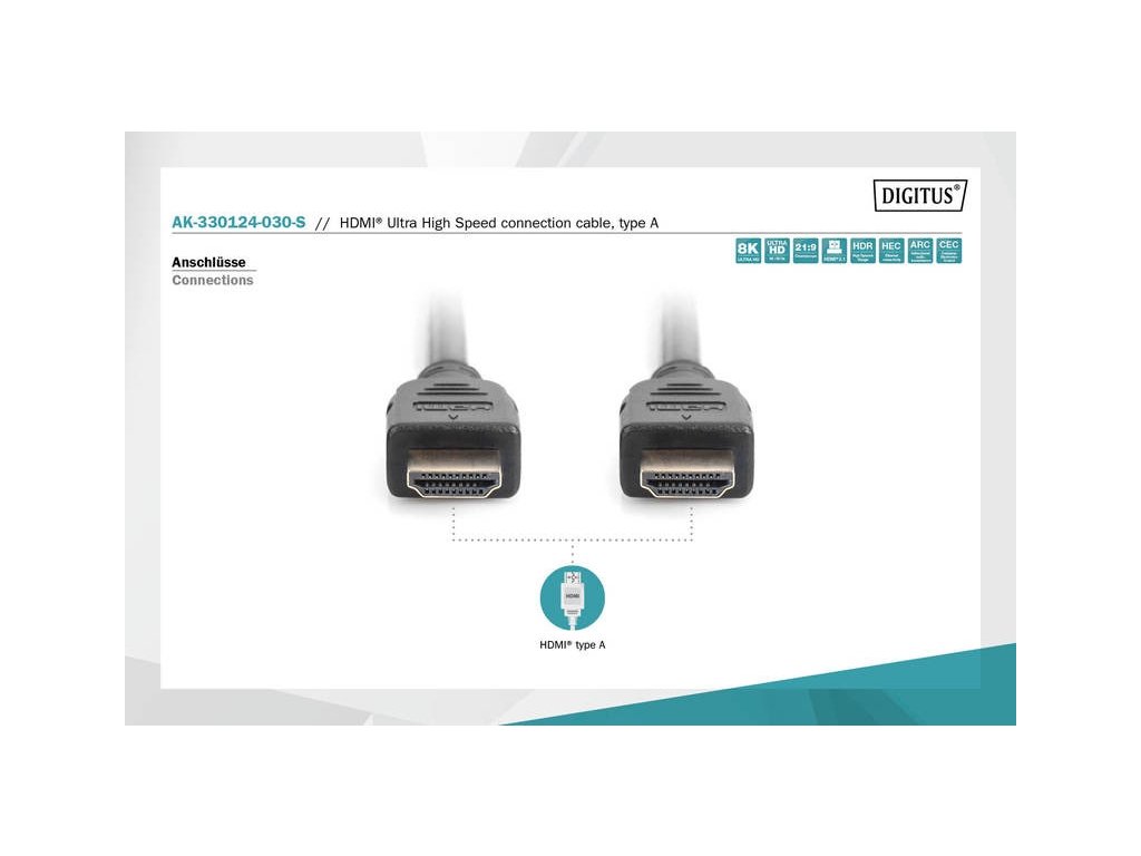 Digitus připojovací kabel HDMI 2.1 Ultra High Speed, typ A M / M, 3,0 m, s Ethernetem, UHD 8K 60p, zlacené konektory