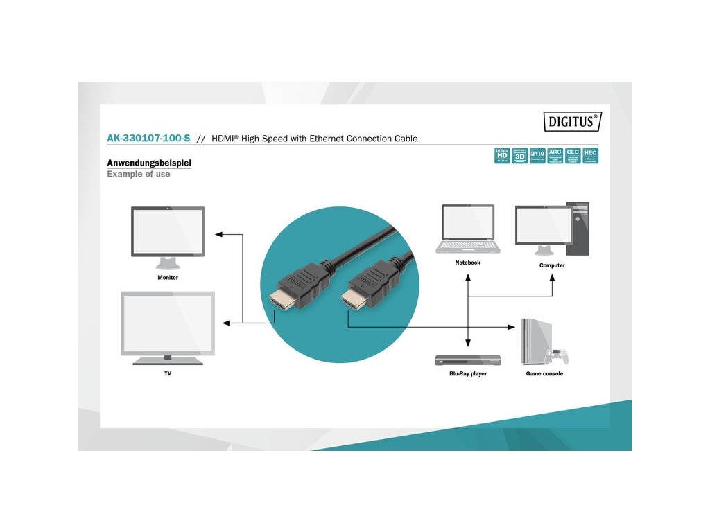 Tento kabel HD a 3D vhodný pro připojení audio / video zařízení, jako je přehrávač Blu-ray, herní podložky nebo konzole atd., Například s televizorem, monitorem nebo počítačem. Lze použít i pro jakoukoli aplikaci založenou na IP.