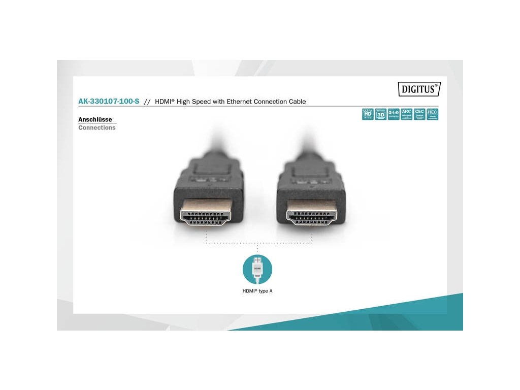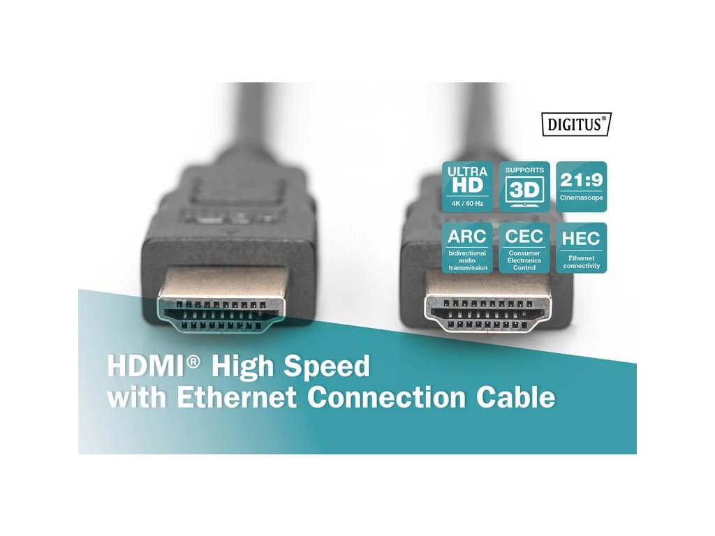 Digitus Připojovací kabel HDMI High Speed, typ A M/M, 10,0 m, Full HD 60p, zlatý, bl