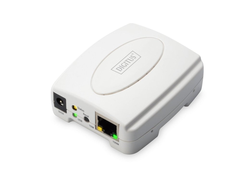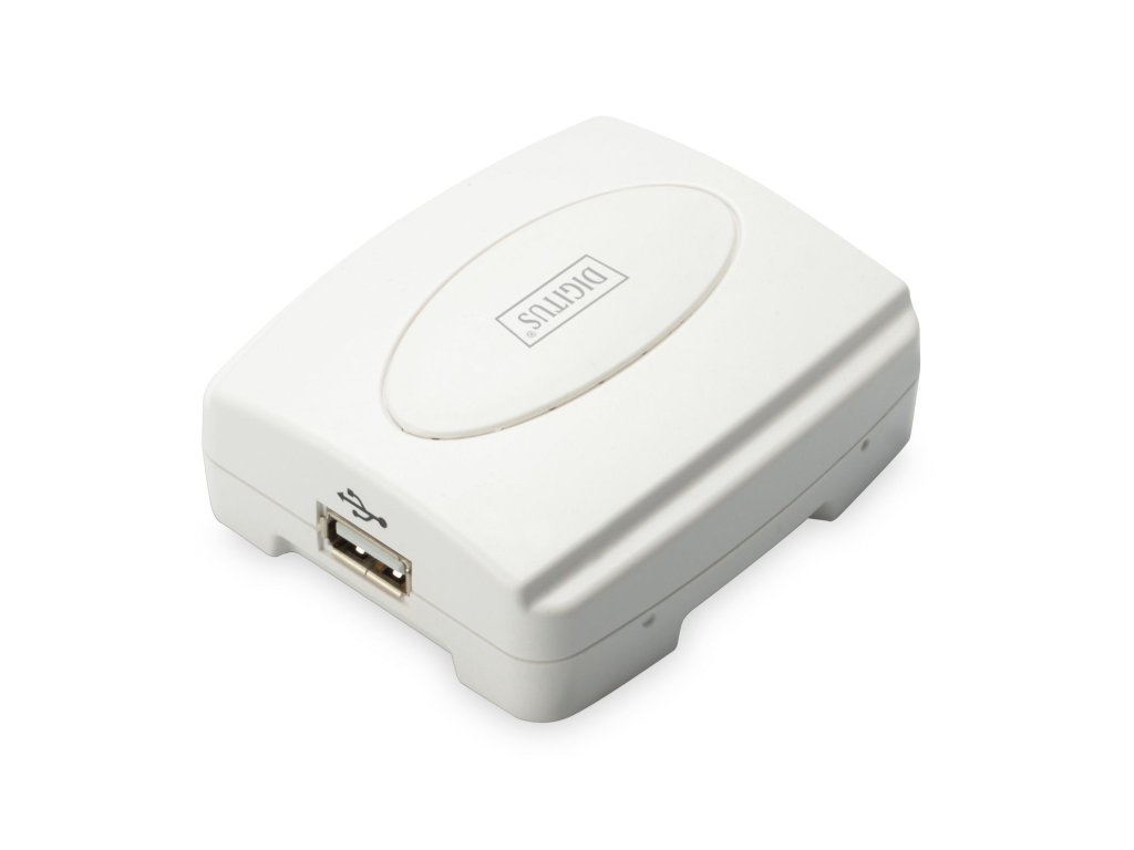 Digitus Tiskový server USB, 1 port, 1x RJ45, 1x USB A, USB 2.0 Pro všechny běžné O/STiskový server USB, 1 port, 1x RJ45, 1x USB A,