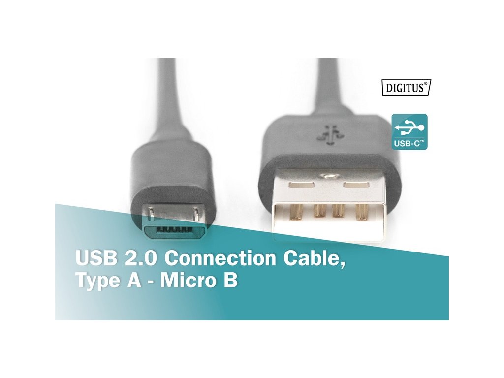 Digitus USB 2.0 kabel USB A samec na USB micro B samec, 2x stíněný, Měď, 1m