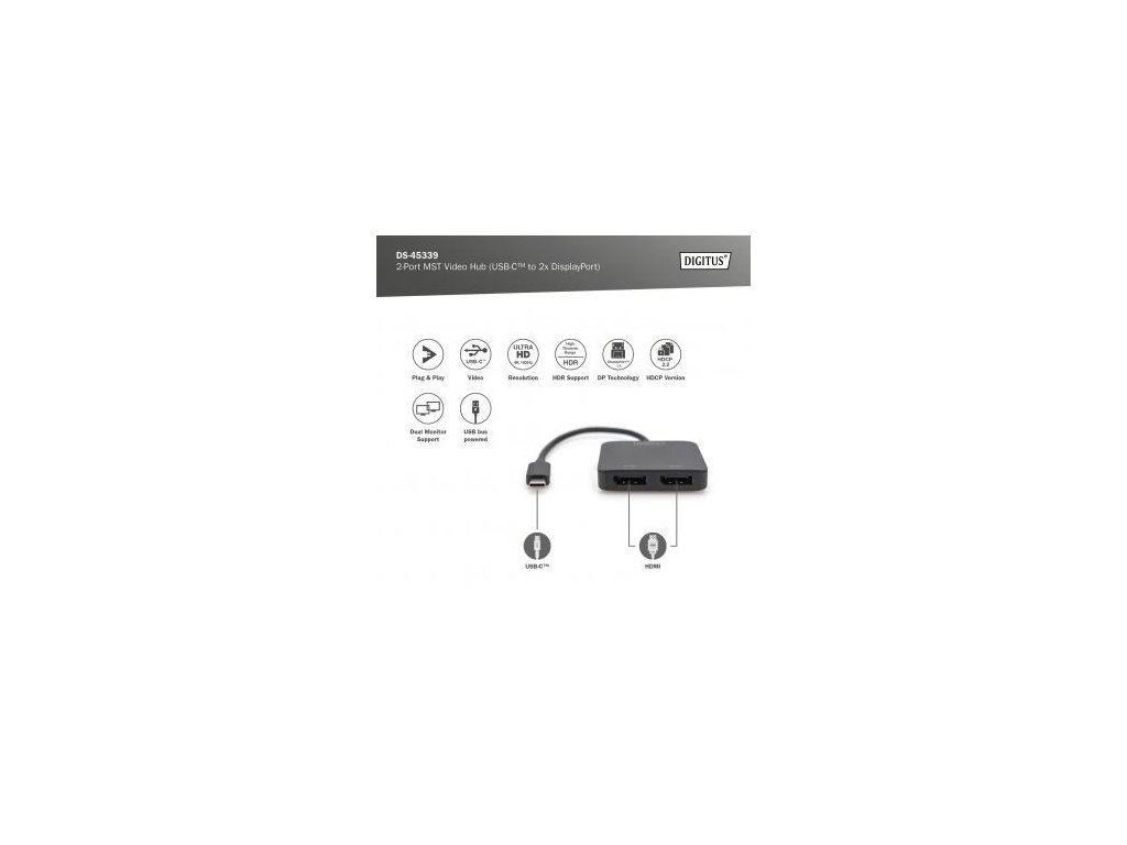 DIGITUS USB-C - 2x DP MST Video Hub DP 1.4, 4K/60Hz