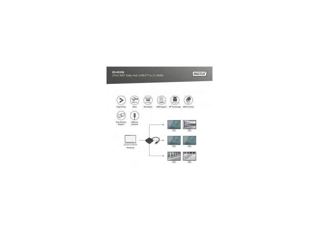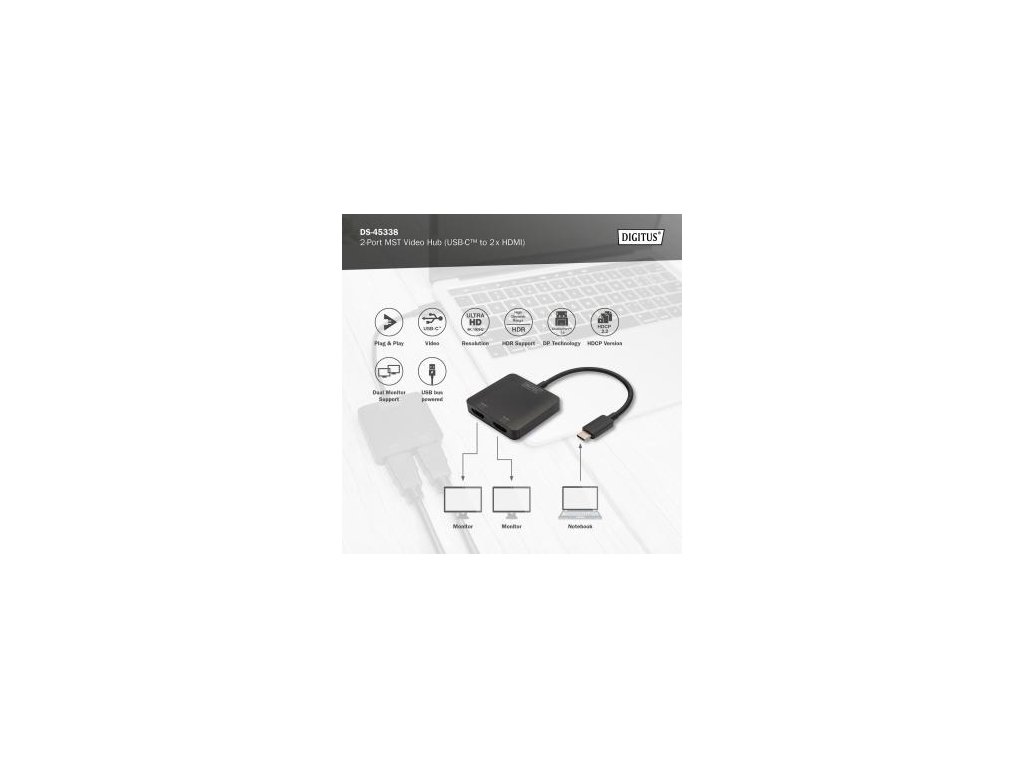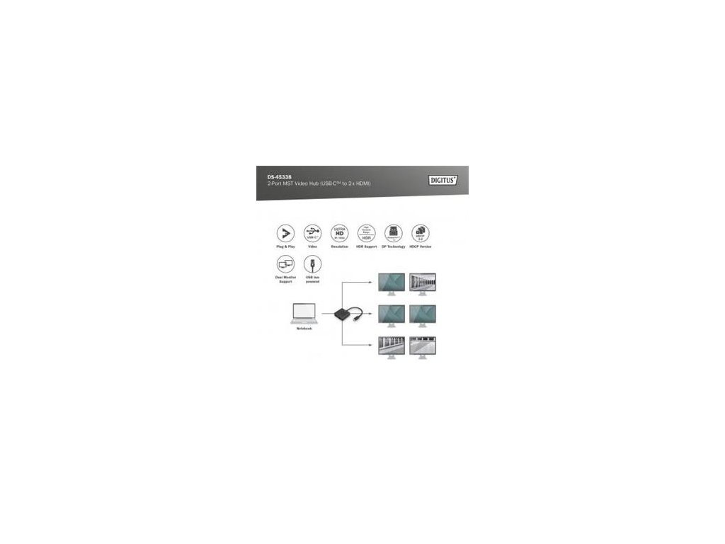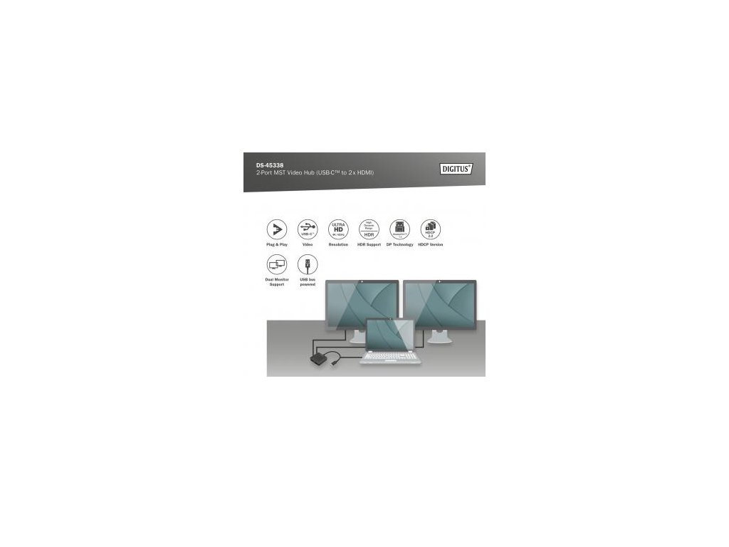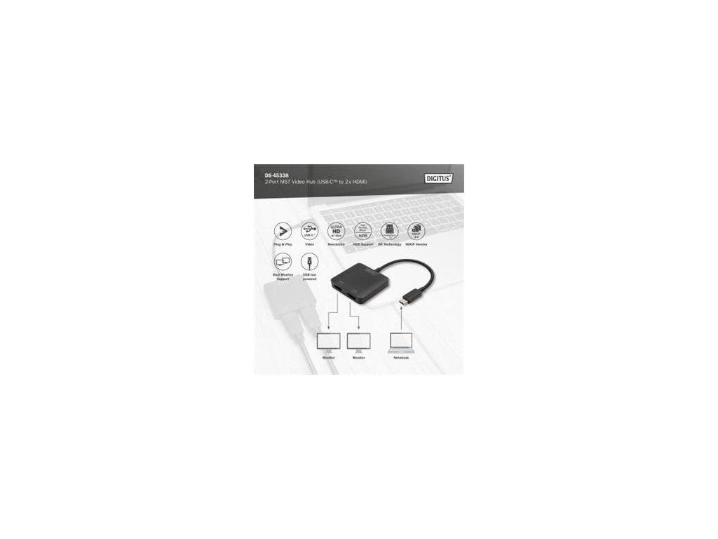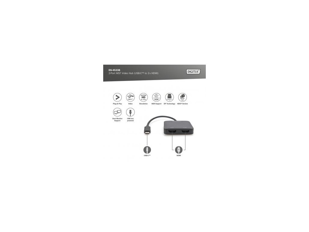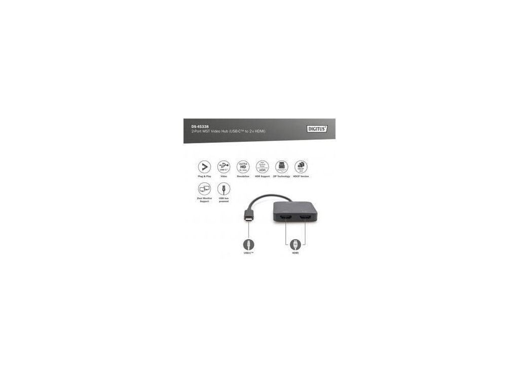 Komentář k produktu DIGITUS USB-C - 2x HDMI MST Video Hub DP 1.4, HDMI 2.0, 4K/60Hz