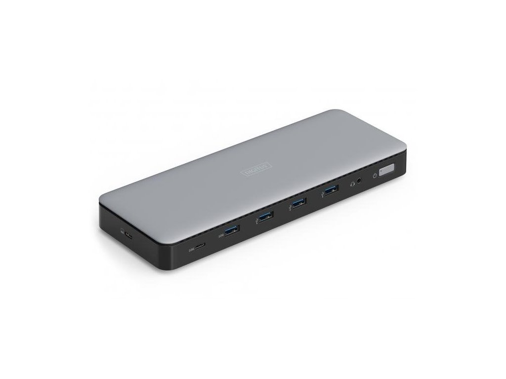 Digitus USB-C dokovací stanice, 13 portů: 3× HDMI, 2× DisplayPort, 4× USB-A, 1× USB-C, 1× RJ45, 1× DC, 1× audio